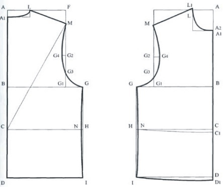 LL1 = А1А2 = (длина переда до талии (Дпт ) - длина спины до талии (Дет )) * 0,4.